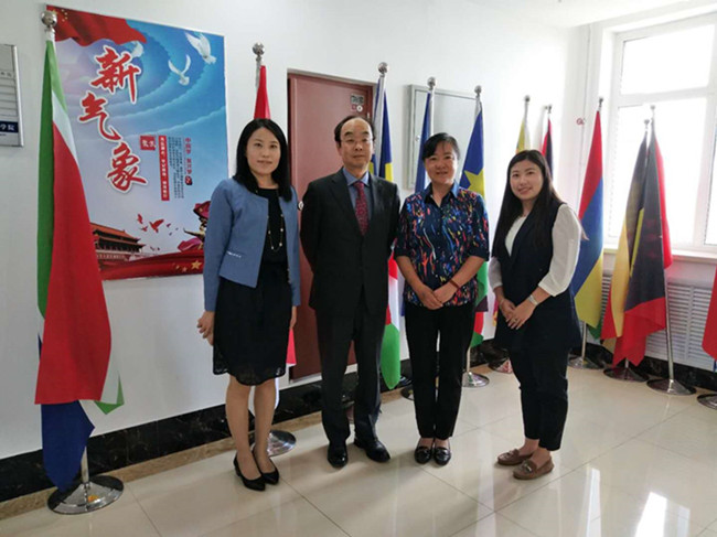 5月24日,国际交流合作处副处长徐晓菲在教学综合楼会议室会见了日本信越(NSG)教育集团国际事务部部长时田一久、国际事务部招生办公室金永兰一行。