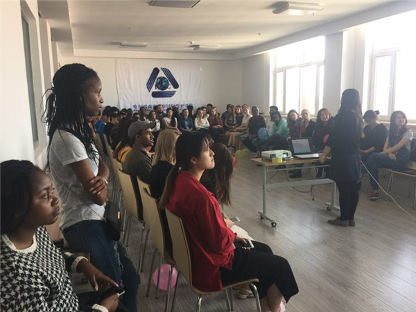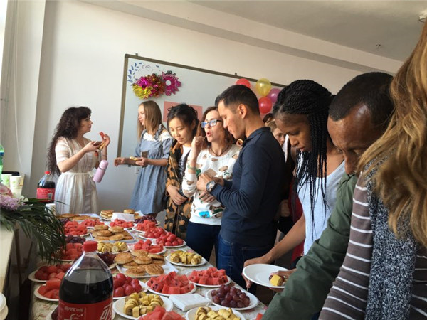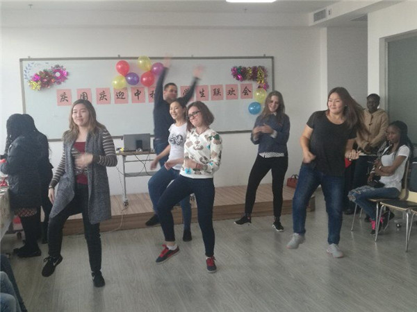留学生们多才多艺,热情开朗,表演了很多丰富多彩、具有民族特色和时代色彩的文艺节目。俄罗斯姑娘们载歌载舞表演了小合唱,韩国欧巴也高歌一曲,哈萨克斯坦的姑娘和小伙子们跳起了欢快、热情的哈萨克舞蹈,埃塞俄比亚的几个留学生也不甘寂寞,跳起了节奏明快的踢踏舞,教室里的气氛顿时火热起来。