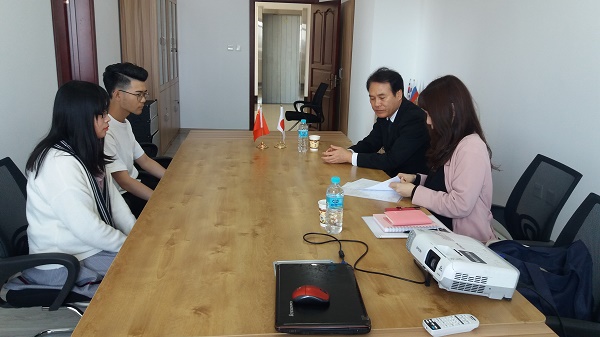 会后,信越(NSG)教育集团一行对我校2名申请下学期去该校交流学习的学生进行了面试。通过面试,郑鹤均校长表示这两名学生非常优秀,日语能力也很好,欢迎我校学生去该校学习交流。