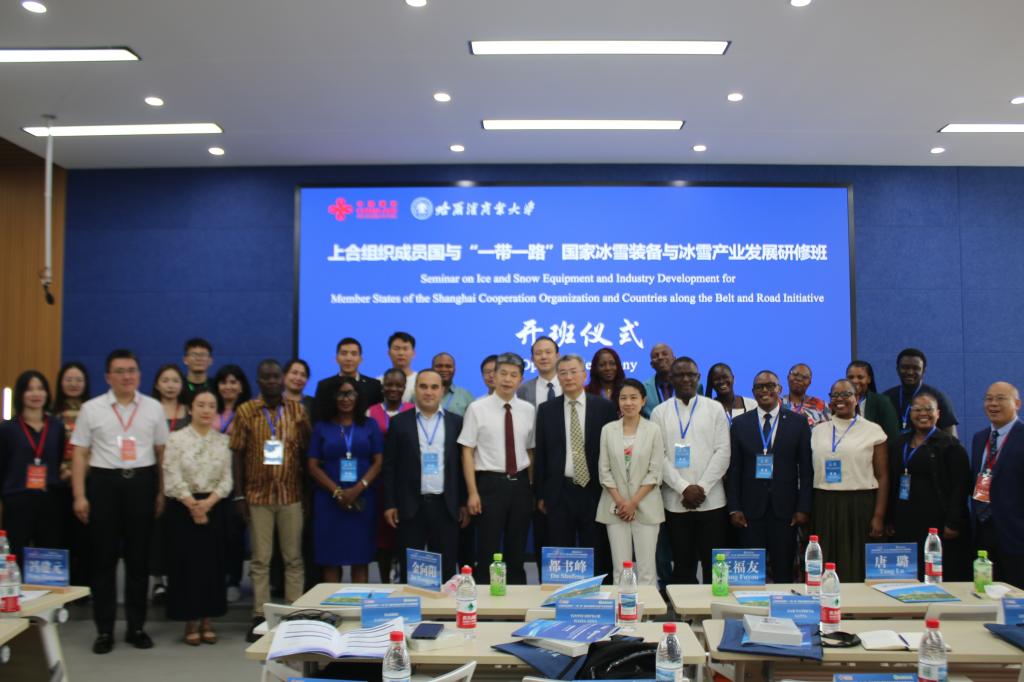 9月12日上午,由商务部主办、哈尔滨商业大学承办的“上合组织成员国与‘一带一路’国家冰雪装备与冰雪产业发展研修班”开班仪式在我校举办。黑龙江省商务厅对外投资和经济合作处处长都书峰,校党委常委、副校长王福友,国际交流合作处处长金向阳、援外项目负责人杨蕾、轻工学院党委书记冯建元、院长晏祖根等单位代表,以及来自埃及、乌兹别克斯坦、莱索托、塞拉利昂等4个国家的31名官员出席。