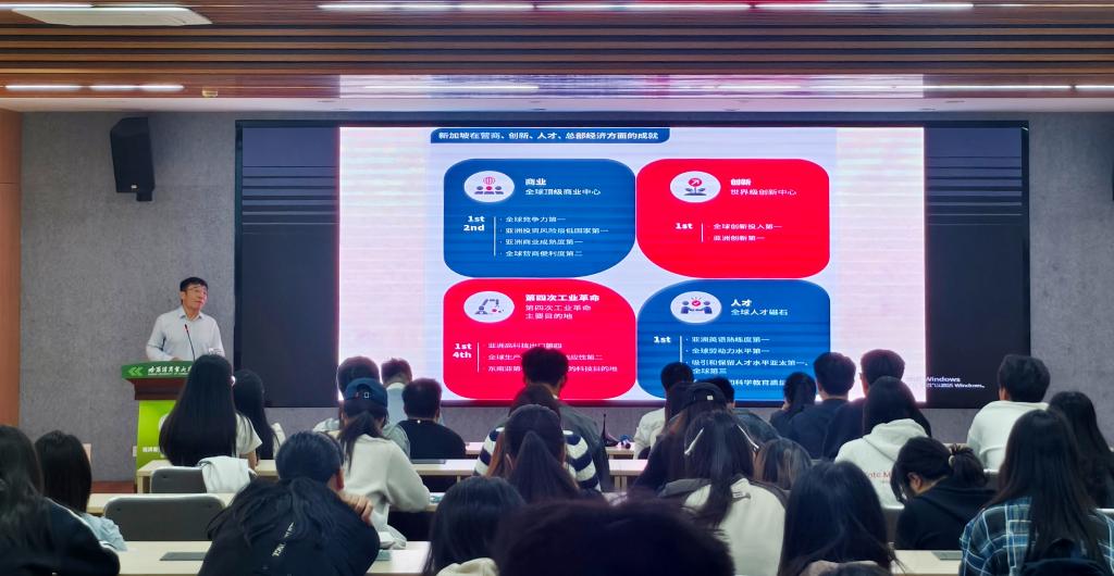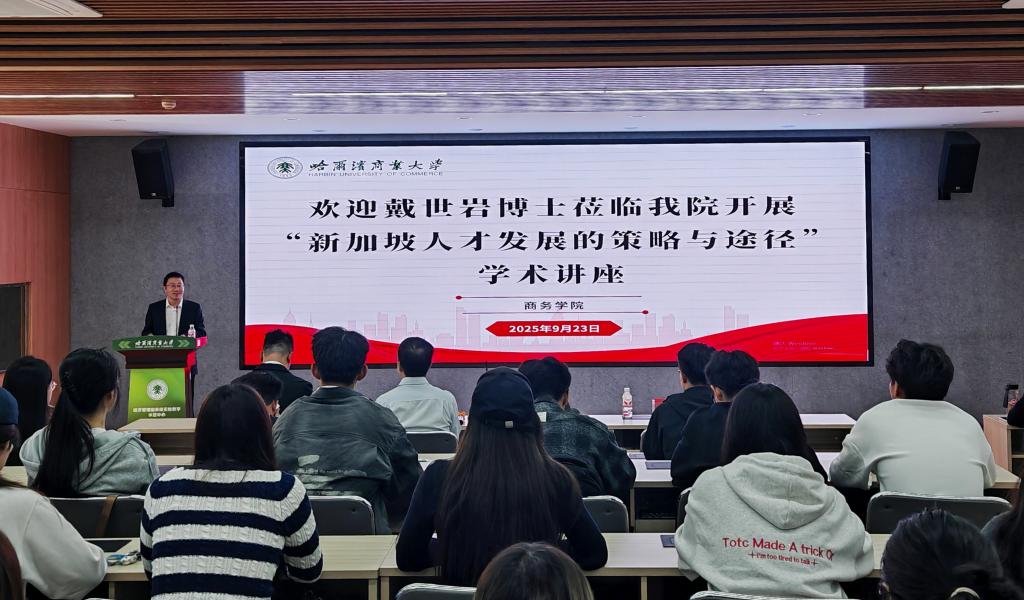 2025年9月23日,商务学院邀请原新加坡南洋理工大学南洋公共管理研究生院副院长戴世岩博士,为全院师生开展了《新加坡人才发展策略与途径》的专题学术讲座。学院青年教师、23和25级人力资源管理专业、24级市场营销专业以及企业管理、技术经济及管理硕士研究生共200余人参加本次讲座。讲座由商务学院院长易加斌教授主持。