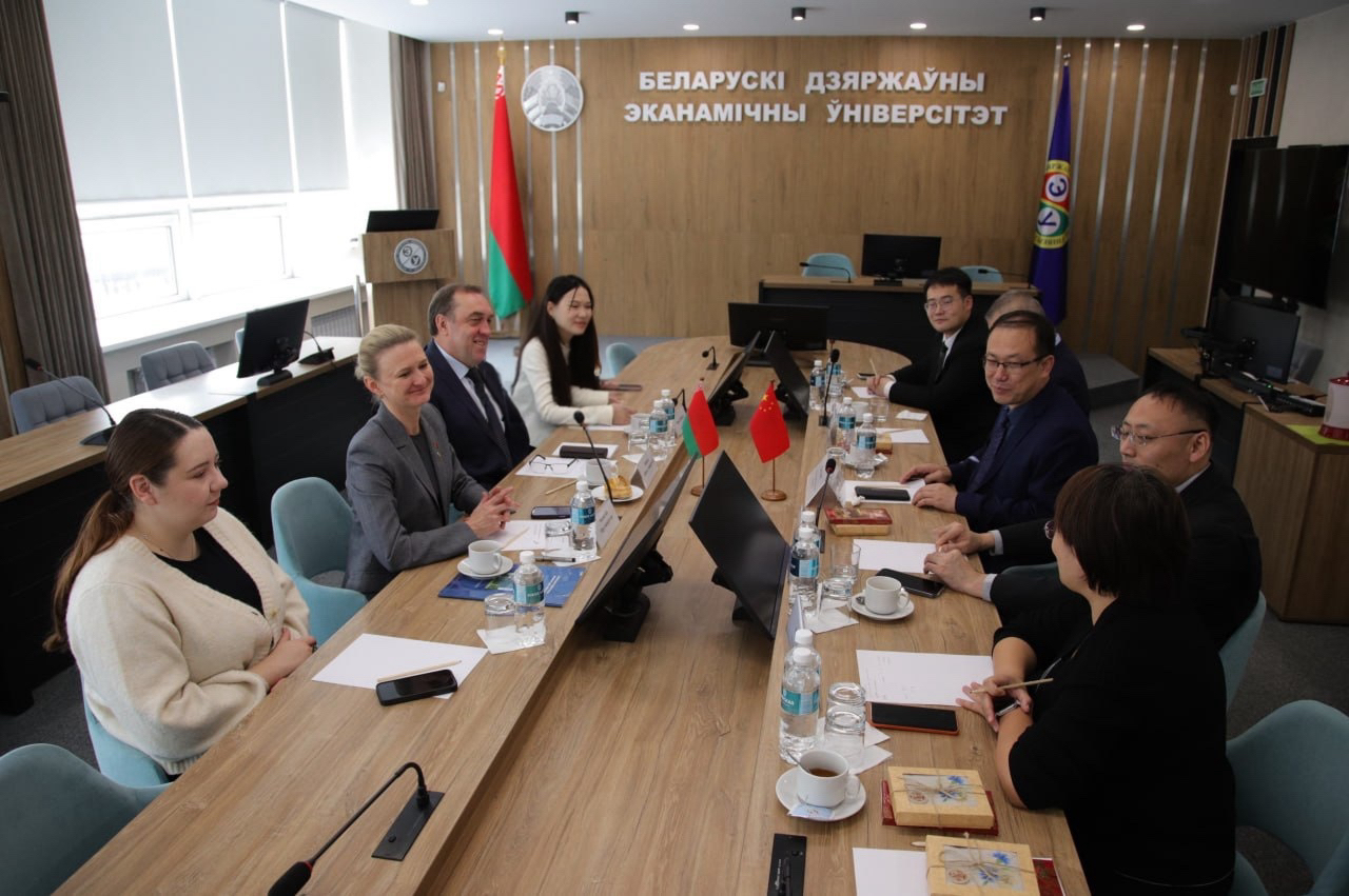 会议期间,我校代表团访问了白俄罗斯国立经济大学。与白俄罗斯国立经济大学校长叶戈罗夫·阿列克谢、国际事务副校长莫罗热维奇·奥尔加、国际处代表穆斯塔法耶娃·娜杰日达、国际商务交流系教师张海容等人员进行了洽谈。双方围绕联合培养硕士研究生、期刊合作、科研合作等内容进行了交流。
