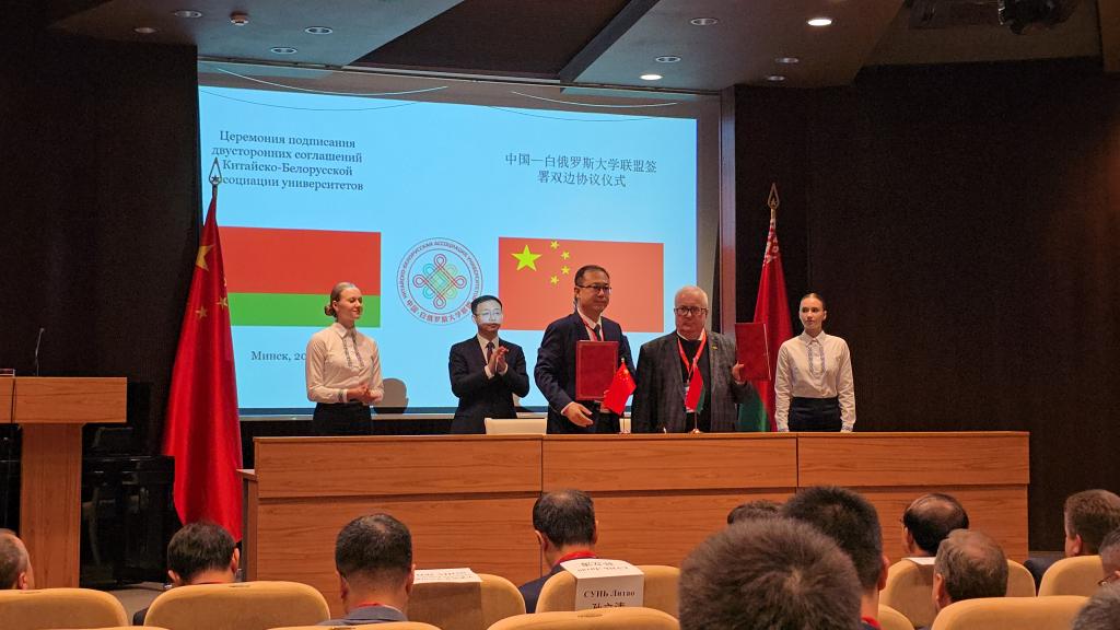 中国—白俄罗斯大学联盟成立于2023年11月,旨在建立两国高校长期稳定的交流机制,重点推动人才联合培养、科研联合攻关、学术成果共享与高水平学术活动组织等方面的深度合作。此次参加第三届中白大学联盟全体大会,加强了我校与白俄罗斯高校的交流与合作,为师生提供了更多的国际交流机会和发展空间。我校将以此次大会为契机,进一步提升自身的国际化水平,加强与国际高校的联系与合作,拓宽师生的国际视野,提升学校的整体竞争力。未来,我校将继续深化与白俄罗斯高校的合作,推动双方在教育、科研、文化等多个领域的全面交流与合作,共同为中白关系的繁荣发展贡献力量。