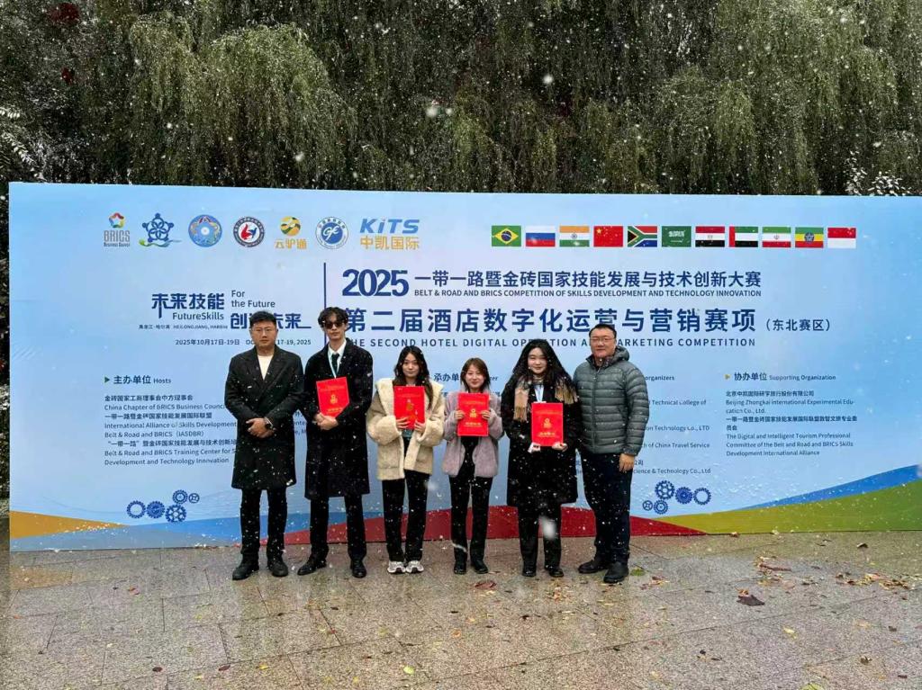 哈尔滨商业大学旅游烹饪学院组建两支本科生代表队参赛。指导教师曲思博根据比赛要求,从理论知识、数字工具运用到营销方案策划进行了全方位辅导,构建了“理论—实操—语言”三位一体的训练体系,显著提升了学生的比赛能力与职业素养。经过三个月的系统训练,凭借扎实的专业功底与出色的团队协作能力,分别荣获本科组一等奖与二等奖的优异成绩。
