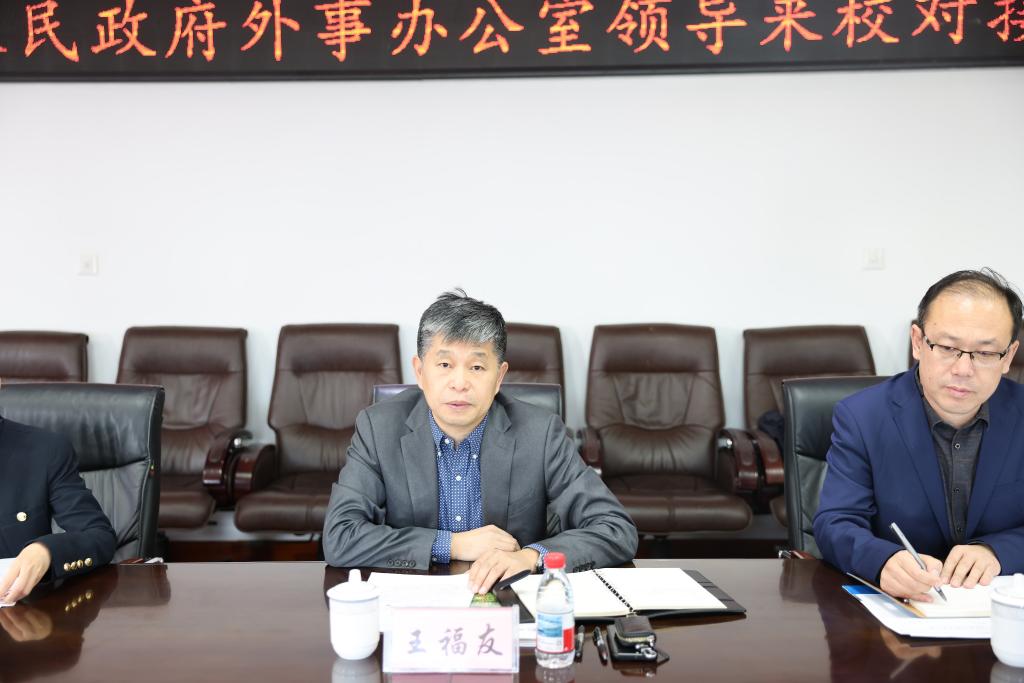 10月24日,黑龙江省人民政府外事办公室副主任李胜彬一行莅临我校调研指导。校党委常委、副校长王福友会见了代表团一行,国际交流合作处相关人员参加调研座谈。